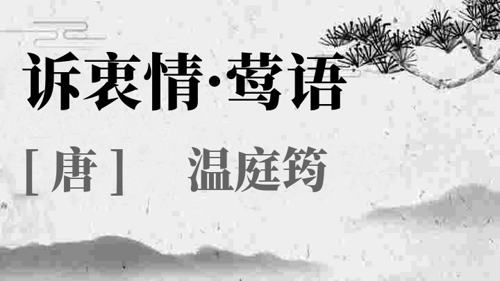 温庭筠(约812或说801、824)年—约866或说870、882年)唐代诗人、词人。本名岐,字飞卿,太原祁(今山西祁县东南)人。富有天才,文思敏捷,每入试,押官韵,八叉手而成八韵,所以也有“温八叉”之称。然恃才不羁,又好讥刺权贵,多犯忌讳,取憎于时,故屡举进士不第,长被贬抑,终生不得志。官终国子助教。精通音律。工诗,与李商隐齐名,时称“温李”。其诗辞藻华丽,秾艳精致,内容多写闺情。其词艺术成就在晚唐诸词人之上,为“花间派”首要词人,对词的发展影响较大。在词史上,与韦庄齐名,并称“温韦”。存词七十余首。后人辑有《温飞卿集》及《金奁集》。