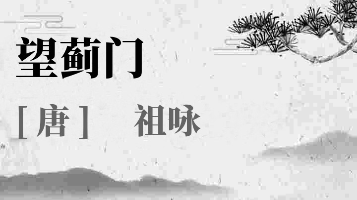 祖咏(699~746),字、号均不详, 唐代诗人,洛阳(今河南洛阳)人。少有文名,擅长诗歌创作。与王维友善。王维在济州赠诗云:“结交二十载,不得一日展。贫病子既深,契阔余不浅。”(《赠祖三咏》)其流落不遇的情况可知。开元十二年(724),进士及第,长期未授官。后入仕,又遭迁谪,仕途落拓,后归隐汝水一带。