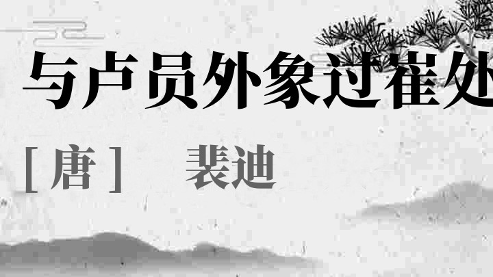 裴迪(716-?),唐代诗人,河东(今山西)人。官蜀州刺史及尚书省郎。其一生以诗文见称,是盛唐著名的山水田园诗人之一。与大诗人王维、杜甫关系密切。早年与“诗佛”王维过从甚密,晚年居辋川、终南山,两人来往更为频繁,故其诗多是与王维的唱和应酬之作。“寒山转苍翠,秋水日潺谖。倚仗柴门外,临风听暮蝉。渡头余落日,墟里上孤烟。复值接舆醉,狂歌五柳前。”这首号称“诗中有画”的诗篇就是王维闲居辋川时答赠裴迪的。受王维的影响,裴迪的诗大多为五绝,描写的也常是幽寂的景色,大抵和王维山水诗相近。