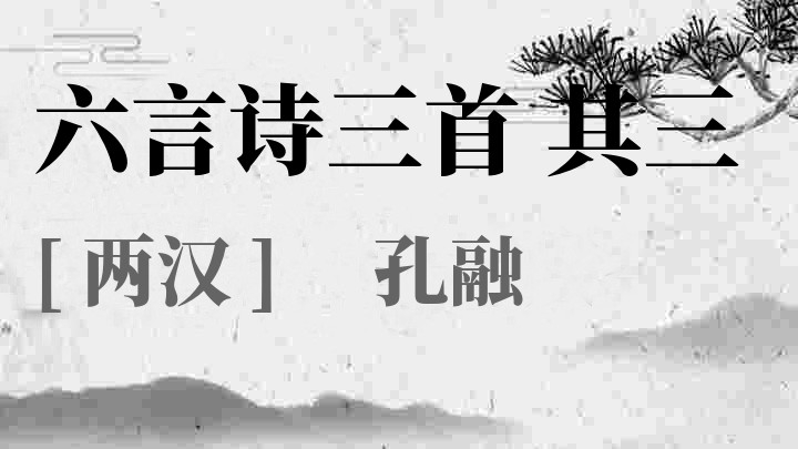 孔融(153-208),字文举,鲁国(治今山东曲阜)人,东汉文学家,“建安七子”之首。家学渊源,是孔子的二十世孙,太山都尉孔宙之子。少有异才,勤奋好学,与平原陶丘洪、陈留边让并称俊秀。献帝即位后任北军中侯、虎贲中郎将、北海相,时称孔北海。在郡六年,修城邑,立学校,举贤才,表儒术。建安元年(196),征还为将作大匠,迁少府,又任大中大夫。性好宾客,喜抨议时政,言辞激烈,后因触怒曹操,为曹操所杀。能诗善文。散文锋利简洁,代表作是《荐祢衡表》。六言诗反映了汉末动乱的现实。原有文集已散佚,明人辑有《孔北海集》。