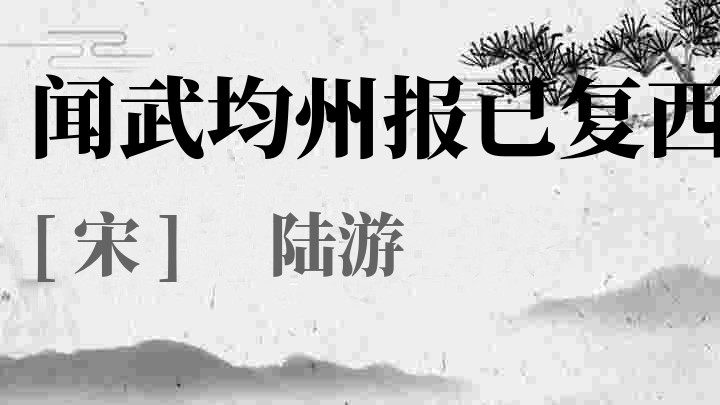 陆游(1125年11月13日-1210年1月26日),字务观,号放翁,汉族,越州山阴(今浙江绍兴)人,尚书右丞陆佃之孙,南宋文学家、史学家、爱国诗人。陆游生逢北宋灭亡之际,少年时即深受家庭爱国思想的熏陶。宋高宗时,参加礼部考试,因受宰臣秦桧排斥而仕途不畅。孝宗时赐进士出身。中年入蜀,投身军旅生活。嘉泰二年(1202年),宋宁宗诏陆游入京,主持编修孝宗、光宗《两朝实录》和《三朝史》,官至宝章阁待制。晚年退居家乡。创作诗歌今存九千多首,内容极为丰富。著有《剑南诗稿》《渭南文集》《南唐书》《老学庵笔记》等。